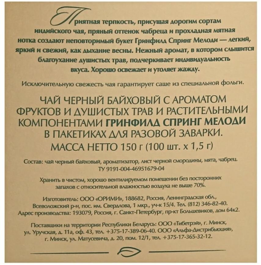 Чай Гринфилд Spring Melody 100 пакетиков