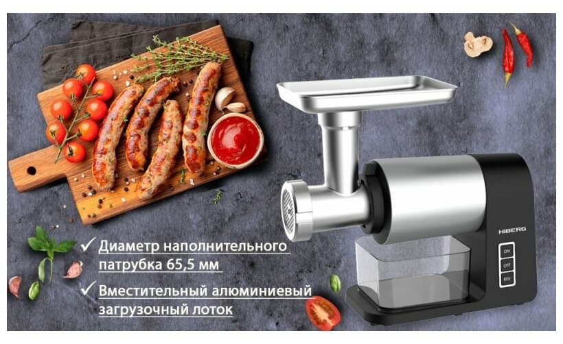 Мясорубка HIBERGMG 990 BS электрическая, 2000Вт, домашняя колбаса, черно-серый