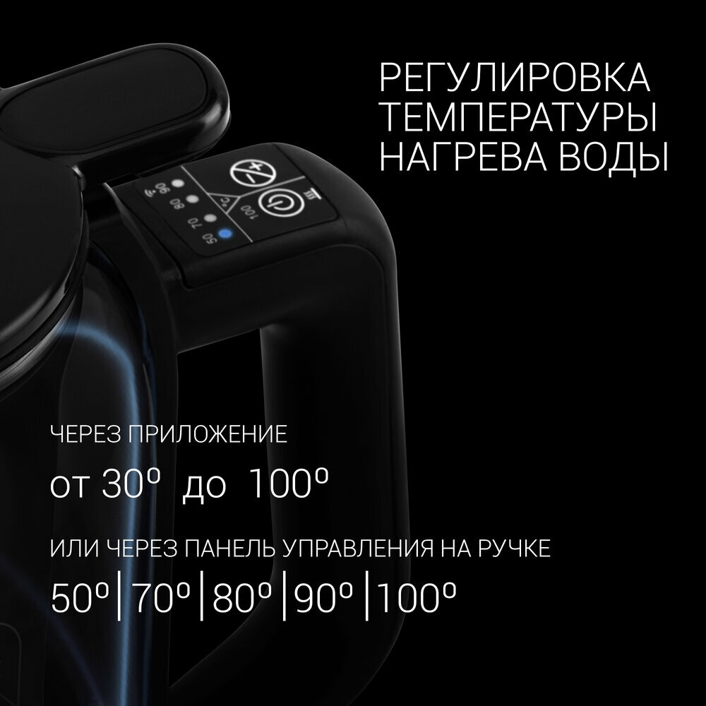 | Плюсы: | Отличный чайник! Огромный плюс - управление с помощью телефона и регулировка температуры нагревания воды. |