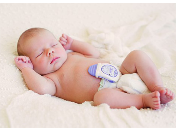 Дыхание он ловит чувствительным датчиком, который касается живота - крепится на подгузник. В теории, ребенок может его сбить ночью, тогда прибор ложно сработает |