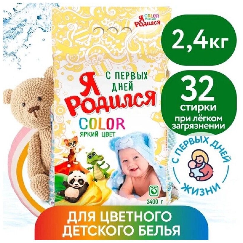 Стиральный порошок для цветного детского белья Я родился Color, автомат, 2.4кг