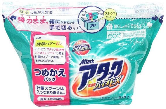 Kao attack bio ex стиральный био-порошок для белого, светлого и слабоокрашенного белья, сменная упаковка, 810 гр