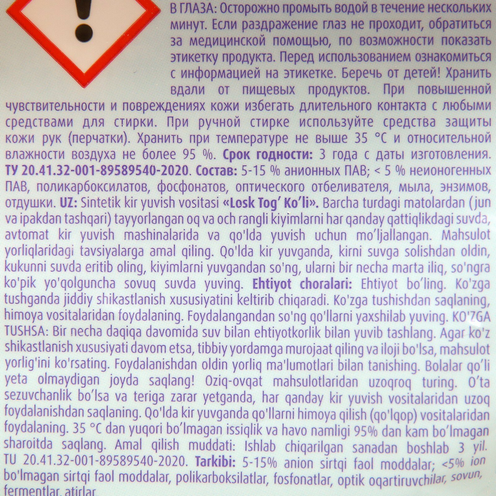 | Отзыв: | Моющее синтетическое средство под торговой маркой «Лоск Автомат Колор Актив-Займ 6» произведено ООО «Хенкель Рус» в России. Образец был приобретен в АО «Крокус Интернешнл» по адресу: Московская обл., Красногорский р-н, автодорога «Балтия», 26-й км, стр. 1. По результатам лабораторных испытаний данный товар подтвердил свое соответствие всем требованиям законодательства и признан качественным и безопасным. Этот порошок абсолютно безопасен. Он не оказывает раздражающего действия при попадании на кожу и конъюнктиву глаз. При попадании в желудок, дыхательные пути или в кровь (через кожные покровы) не оказывает токсичного воздействия на организм. Массовая доля фосфатов соответствует установленным нормам. Порошок хорошо вымывается из тканей после трехкратного ополаскивания. Кроме того, он образует минимальный объем пены. Стиральный порошок хорошо отстирывает белковые загрязнения (кровь), хотя, согласно маркировке, этот порошок не предназначен для удаления пятен белкового типа. Однако он недостаточно хорошо справляется с пигментно-масляными (например, жир). После 25 стирок этим порошком ткань остается такой же прочной. Порошок не влияет на образование пиллей (катышков) на ткани. Количество пиллей одинаковое при стирке с порошком и при стирке без порошка. Ткань не пожелтеет и не посереет после 25 контрольных стирок. Количество минеральных веществ, оседающих на ткани, соответствует установленным Роскачеством нормам. Это значит, что ткань не станет жесткой и грубой после стирки. Массовая доля пыли в составе порошка соответствует установленным нормам. Это означает, что порошок не несет опасности для лиц, страдающих астматическими заболеваниями. Фактическая масса нетто стирального порошка соответствует указанной в маркировке. |