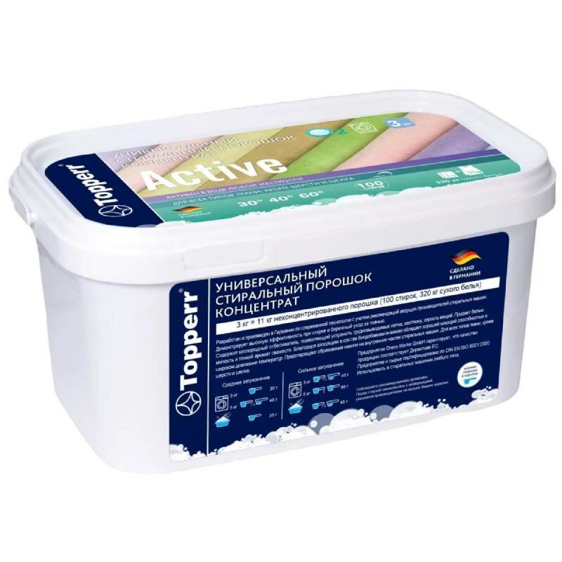 Купить Topperr Стиральный порошок "Active", концентрат, универсальный, 3 кг