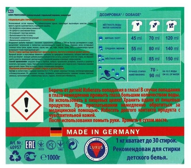 LUXUS Professional Стиральный порошок концентрат, Универсальный, 1кг