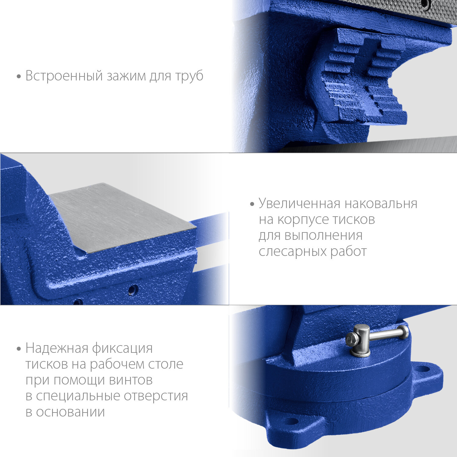 Sparta Тиски слесарные Sparta, 100 мм, поворотные, с наковальней