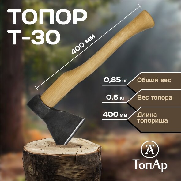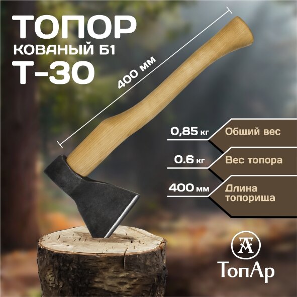 Топор кованый с деревянной рукояткой "Wolf Axe" ТопАр 0,6 кг/ Топорище 400 мм термообработанное из березы/дерево/с покрытием лаком/в сборе Б1 интересное: