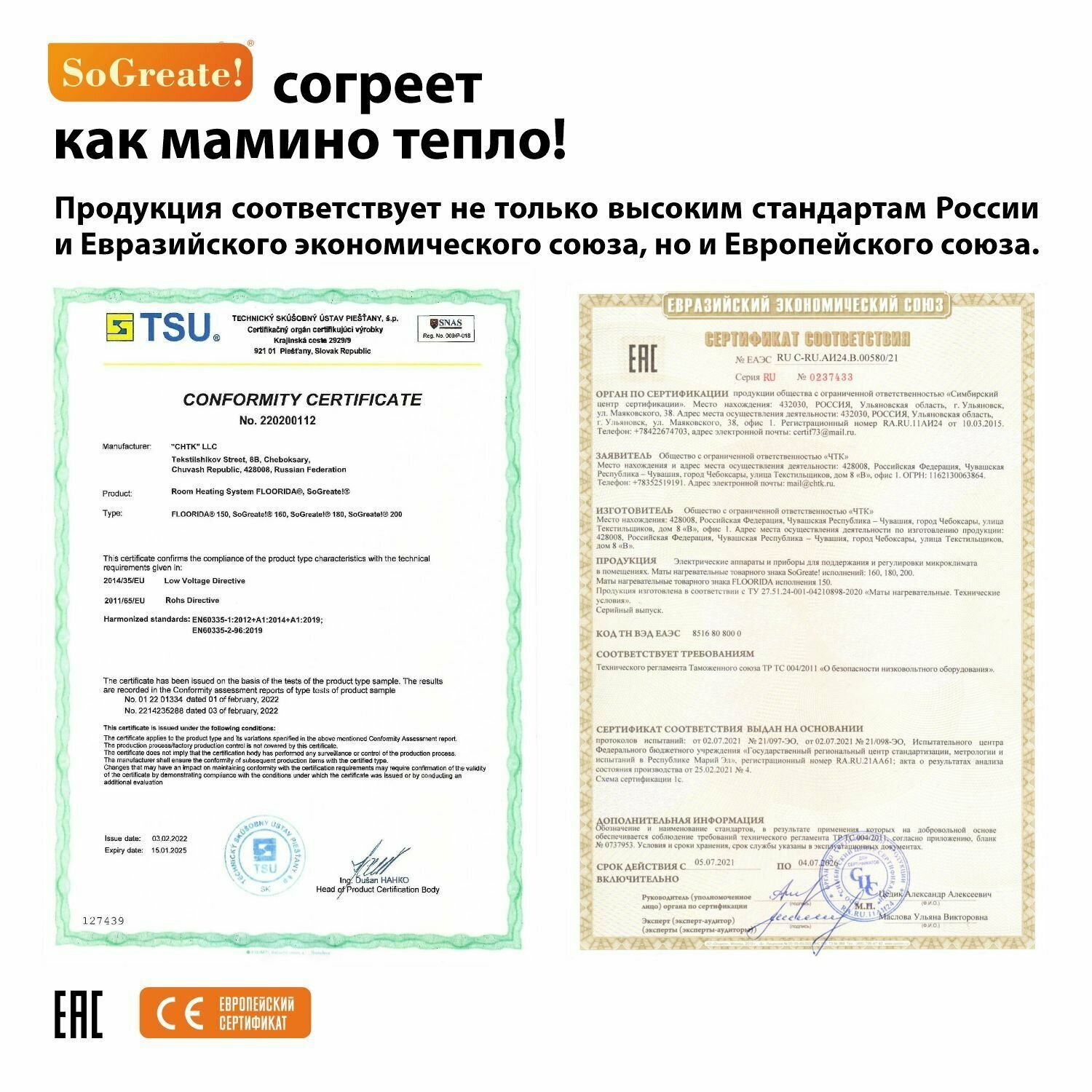 Теплый пол ЧТК. Мат нагревательный SoGreate! 1,0кв.м. 160Вт.