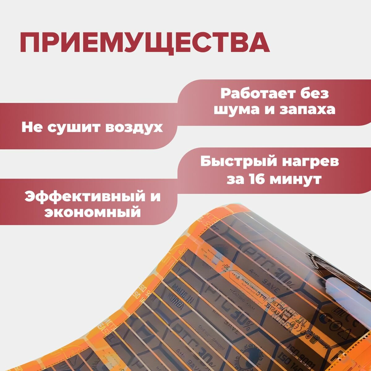 СохранитьСаморегулирующаяся инфракрасная плёнка EASTEC Energy Save PTC orange 30% (50 см) 9м интересное: