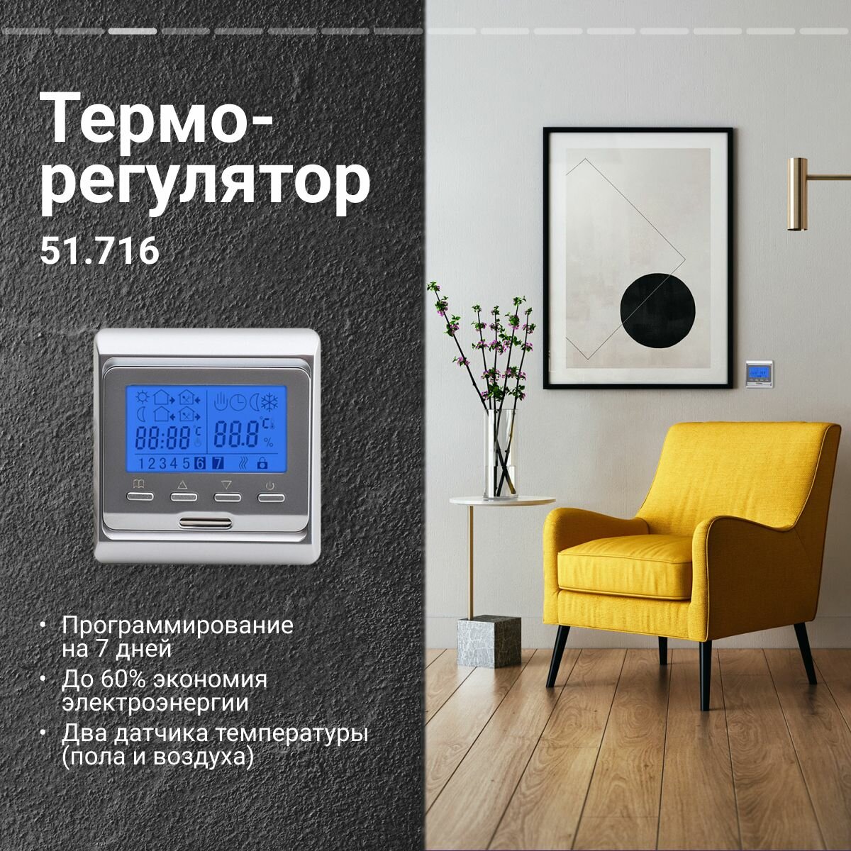 Теплый пол Nunicho 1,5 м2 с программируемым серебристым терморегулятором в комплекте