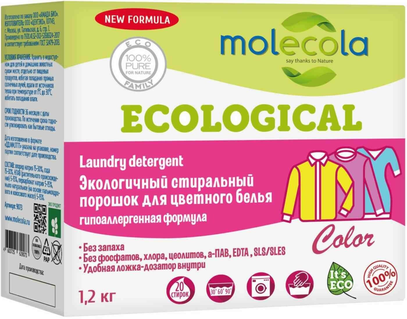 Стиральный порошок MOLECOLA для цветного белья с растительными энзимами экологичный 1,2 кг