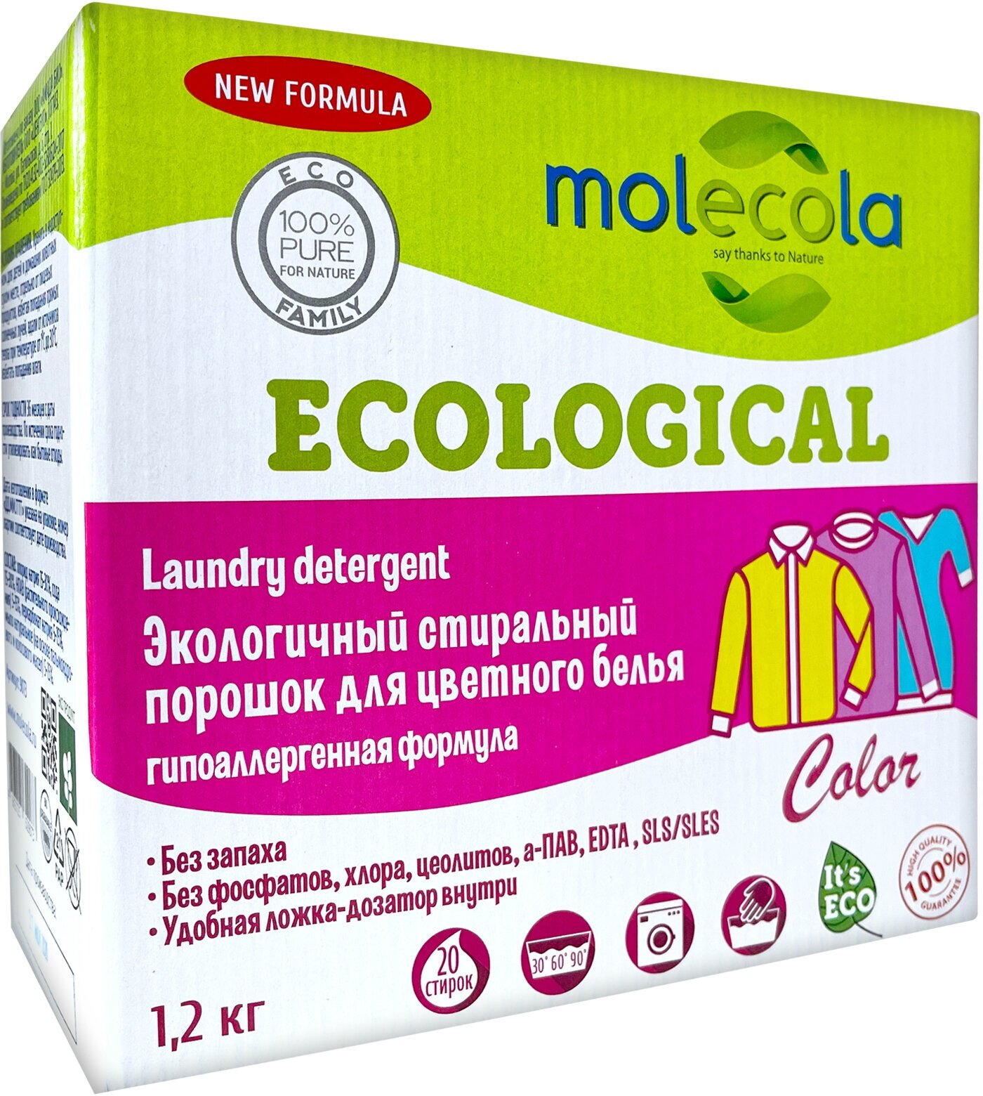 MOLECOLA Экологичный стиральный порошок с растительными энзимами для цветного белья и одежды. Color 1,2 кг