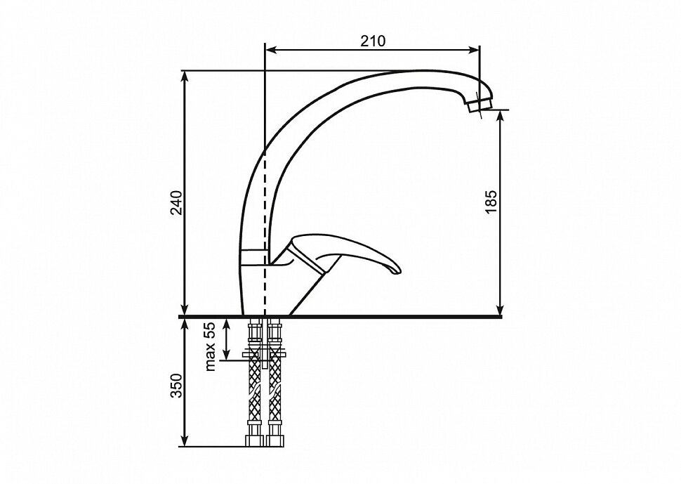 Смеситель 02-309 кухня боковая (темно-серый) EcoStone