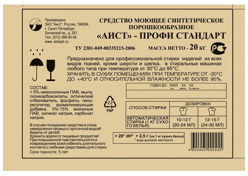 Порошок для машинной стирки Аист "Профи. Стандарт", 20кг интересное: