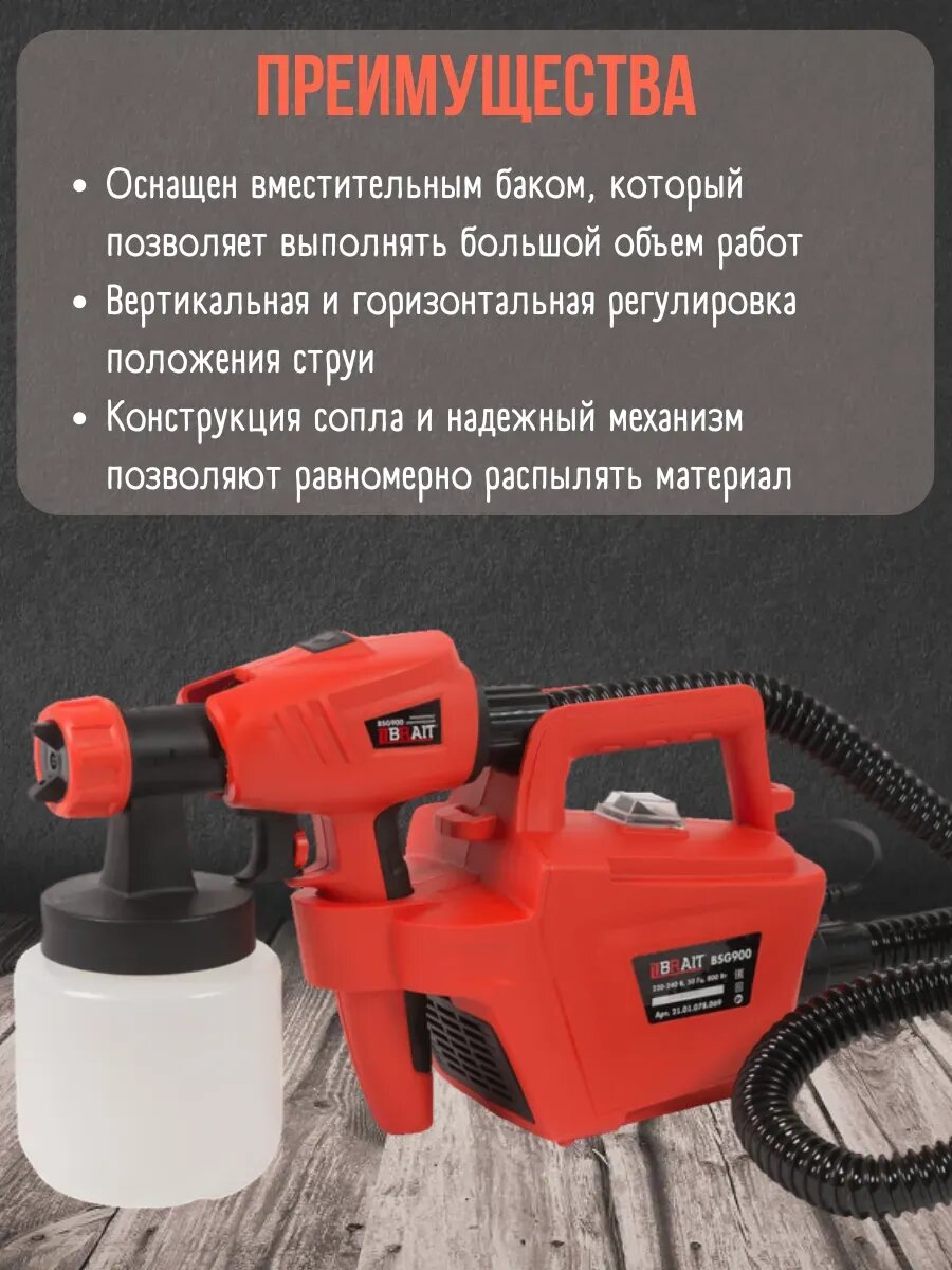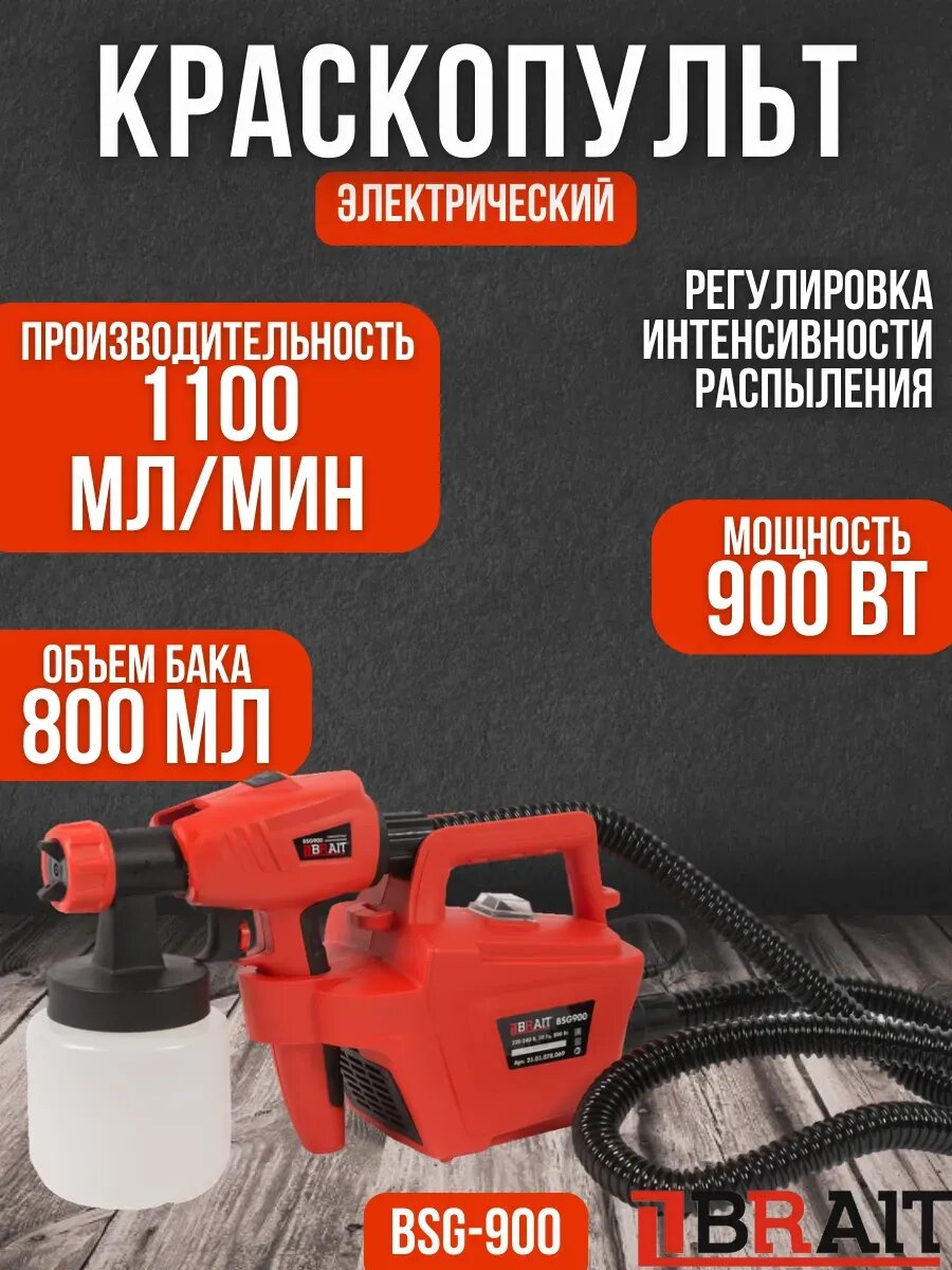 Краскопульт электрический BRAIT BSG-900 (800Вт, бачок 800мл, максим. подача 1100 мл/мин