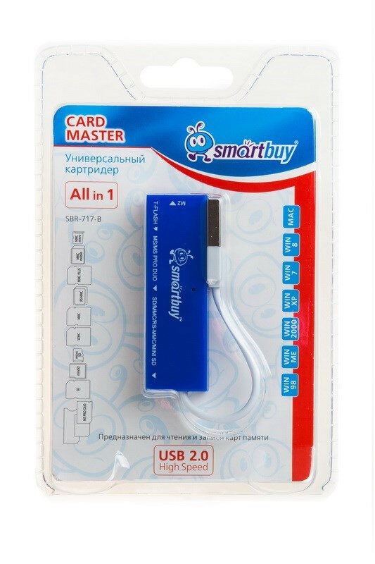 Купить Картридер Smartbuy 717, USB 2.0 - SD/microSD/MS/M2, синий