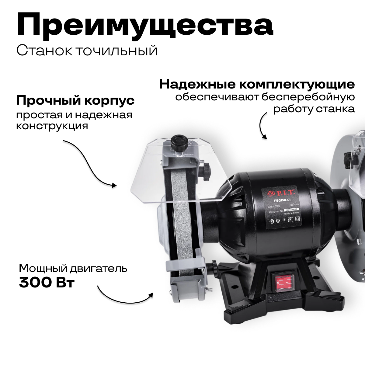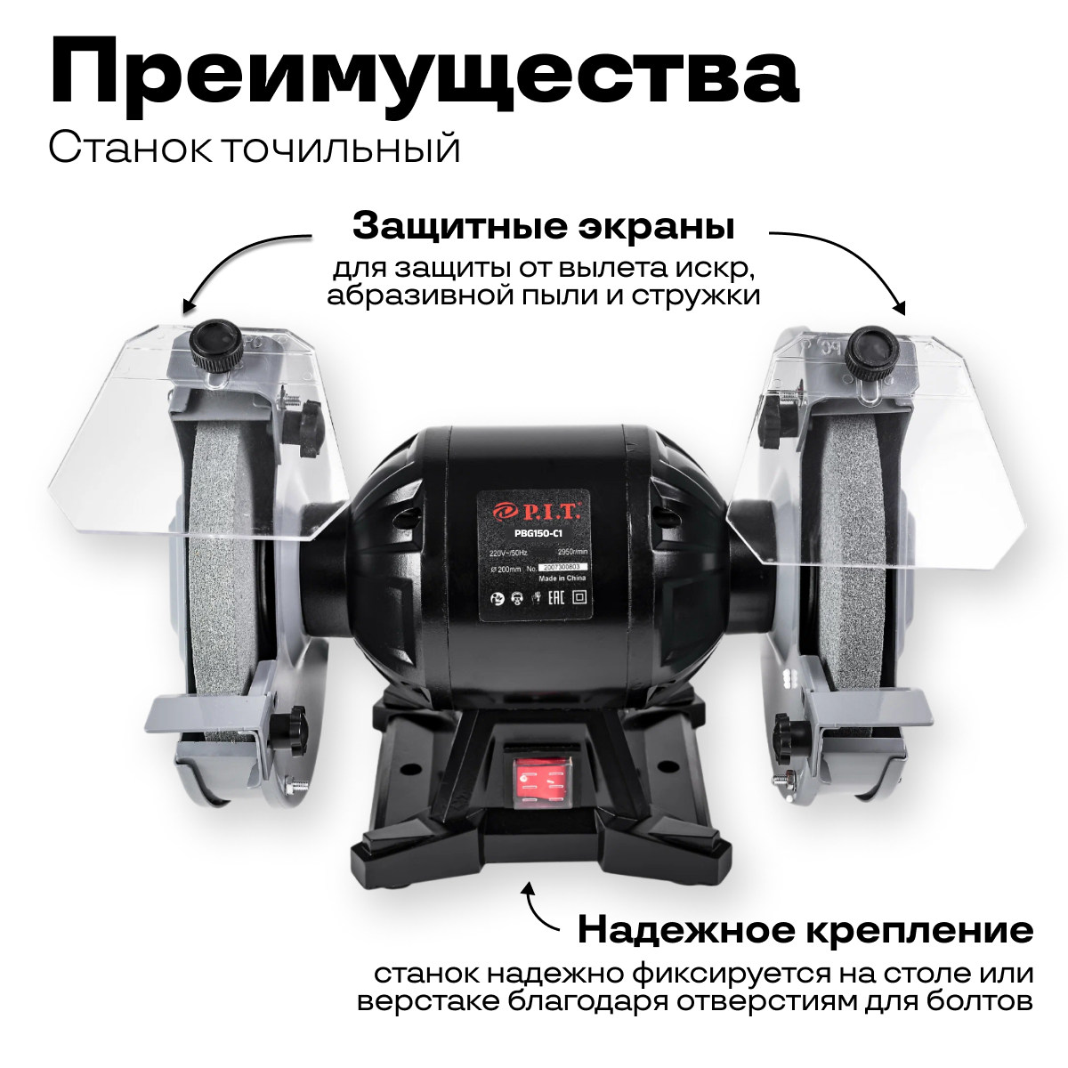 Станок точильный P.I.T. PBG150-C1 мастер (Ø150*12.7*20, 300Вт. 2950 об.мин.)