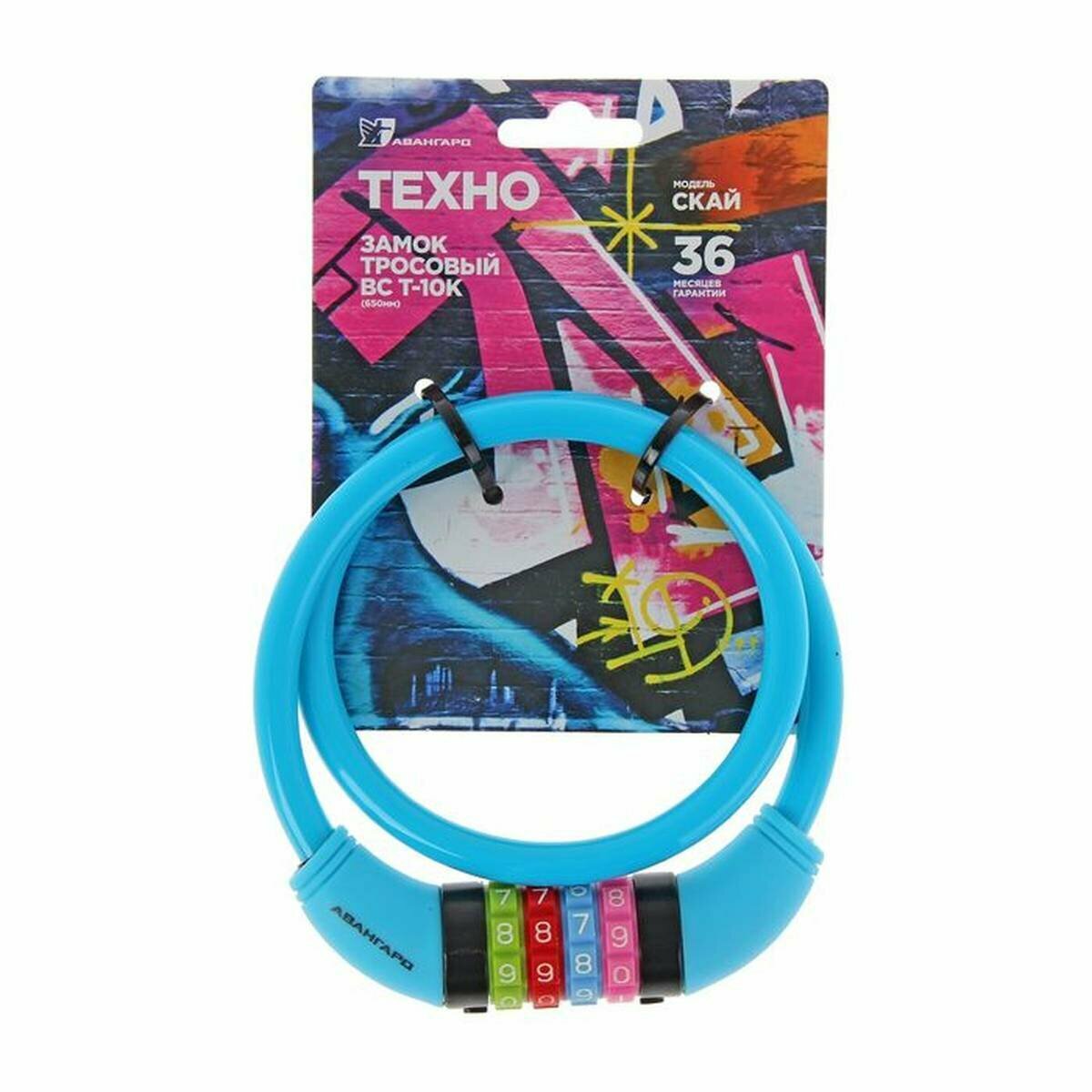 Замок велосипедный тросовый Авангард ВС-Т10К (650 мм) техно скай