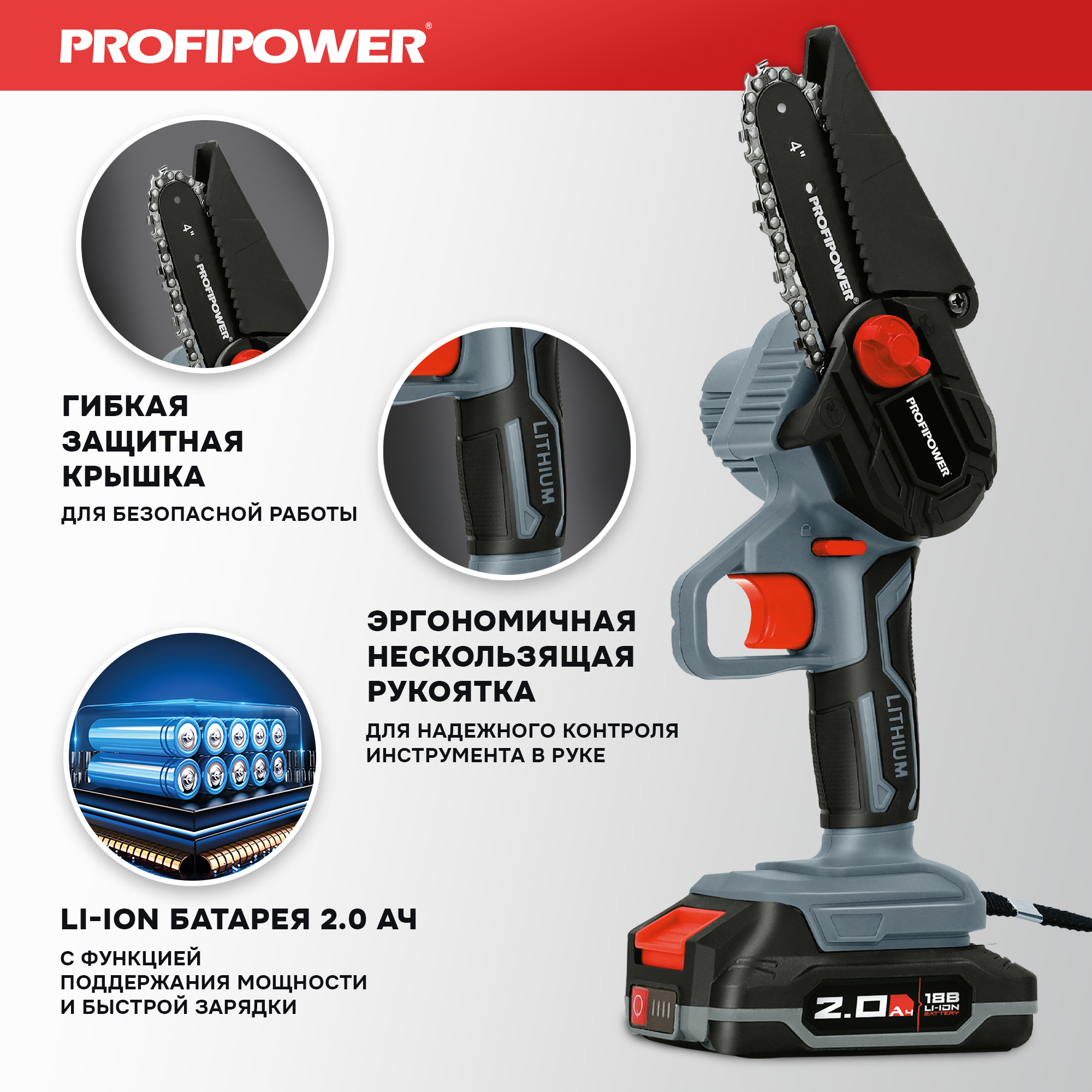 Аккумуляторная цепная пила PROFIPOWER MKGSD-18V (18в 2акк*2Ah+з.у)