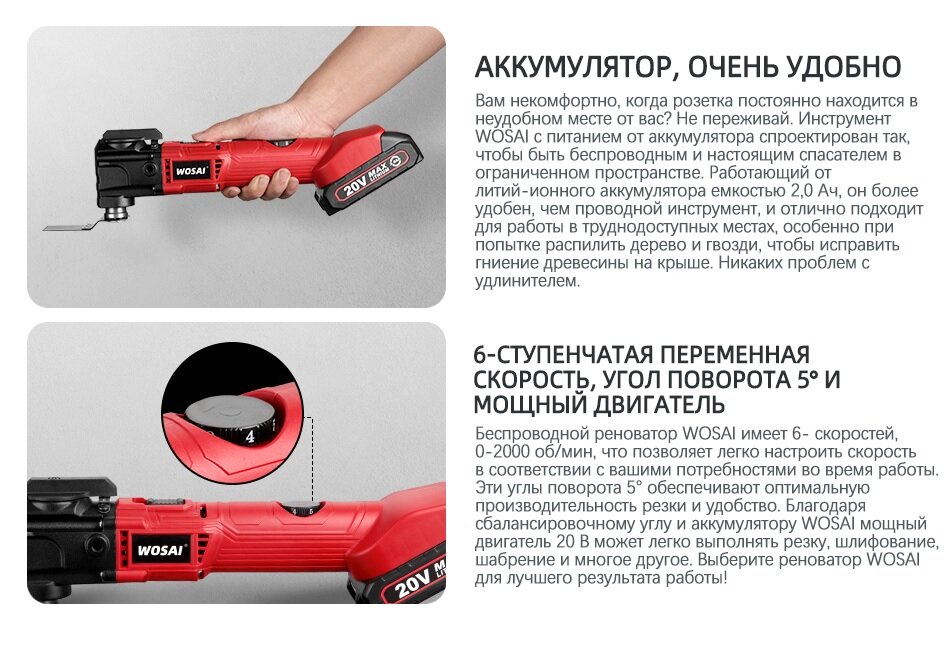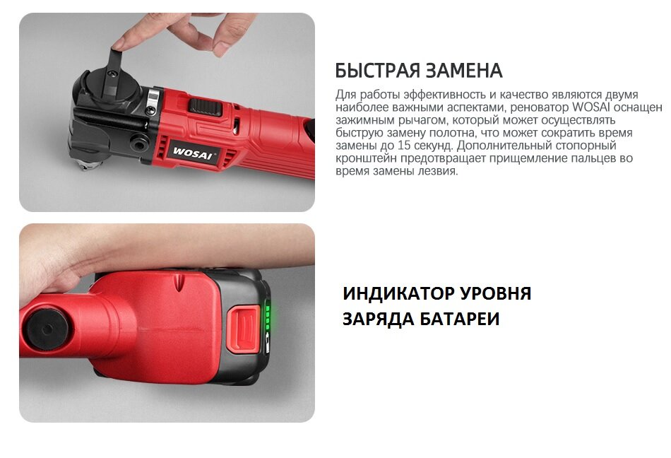 Многофункциональный осциллирующий инструмент (реноватор) VVOSAI (WOSAI) 20В 2,0Ач WS-WYB20-C1 интересное:
