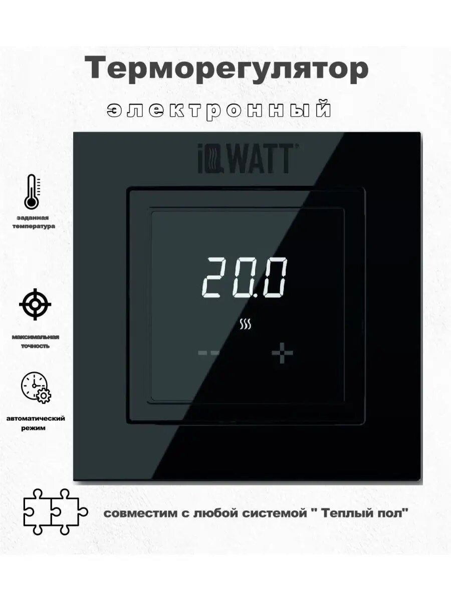 Терморегулятор IQWATT IQ THERMOSTAT D black (подходит в любую квадратную рамку другой ЭУИ)