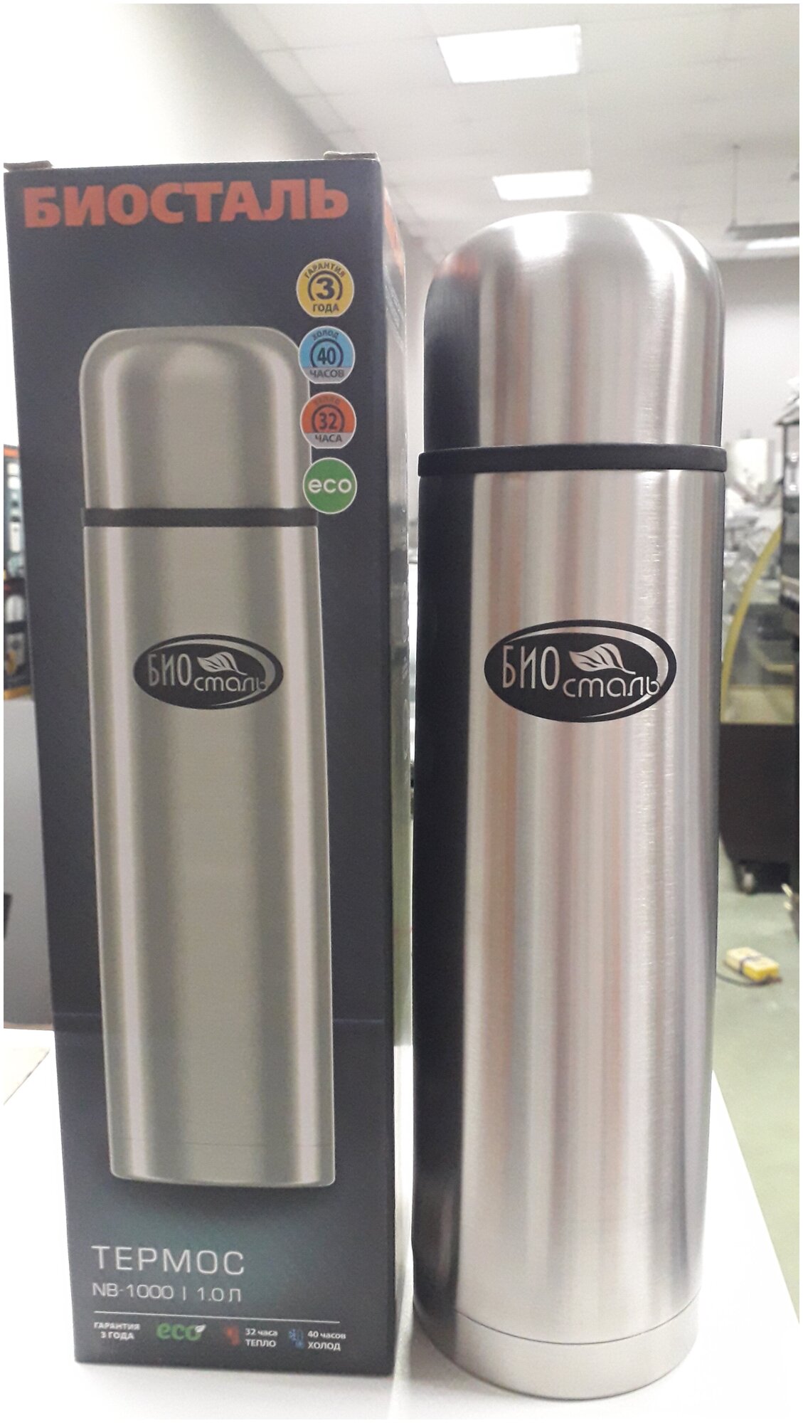 Термос биосталь NB-1000 1л, серебристый