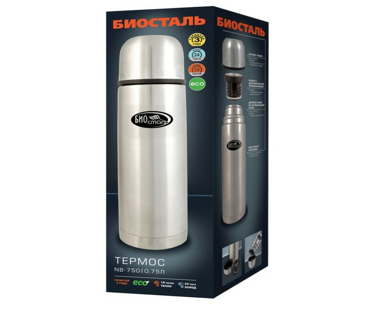 Термос Биосталь из нержавеющей стали, 0,75 литра