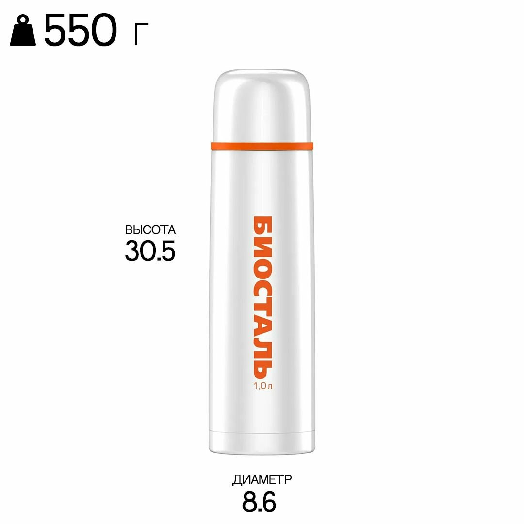 Классический термос Biostal NB-1000C, 1 л, white