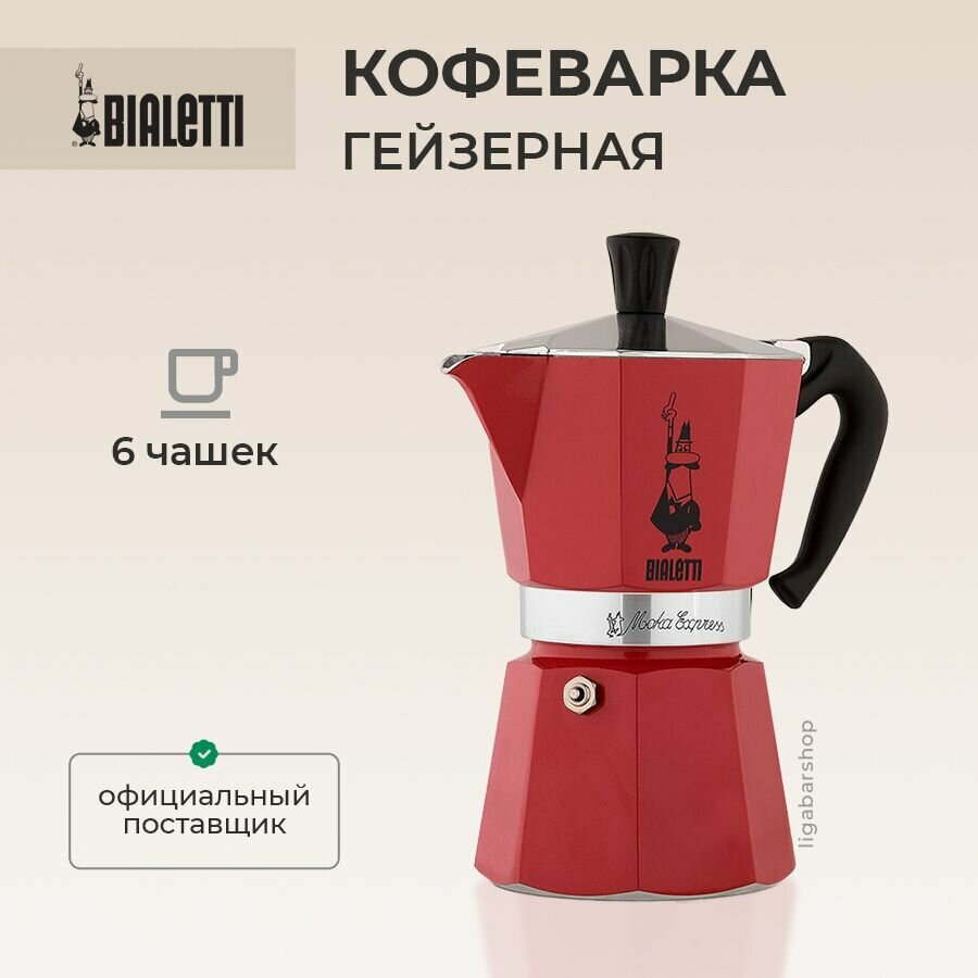 Гейзерная кофеварка Bialetti Moka Express (6 чашек), 270 мл, 270 мл, красный