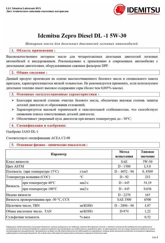 Ниже Вы можете прочитать отзывы на Полусинтетическое моторное масло IDEMITSU Zepro Diesel DL-1 5W-30, 1 л, ознакомится с подробными характеристиками, посмотреть интересные обзоры и фотографии на Полусинтетическое моторное масло IDEMITSU Zepro Diesel DL-1 5W-30, 1 л.