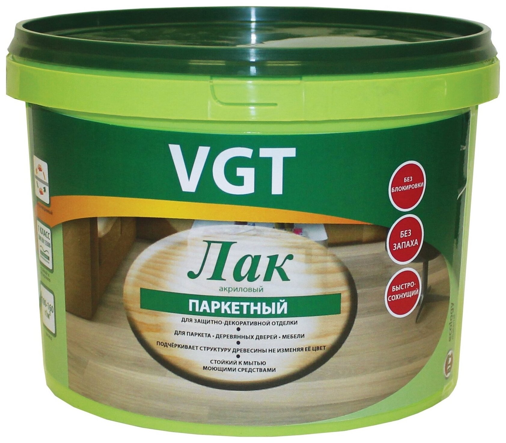 ВГТ лак по дереву акриловый паркетный полуматовый (0,9кг) / VGT лак по дереву акриловый паркетный полуматовый для пола и мебели внутри помещения (0,9к
