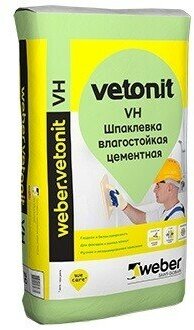 Влагостойкая шпаклевка Vetonit VH цементная, 20 кг 1020761 .