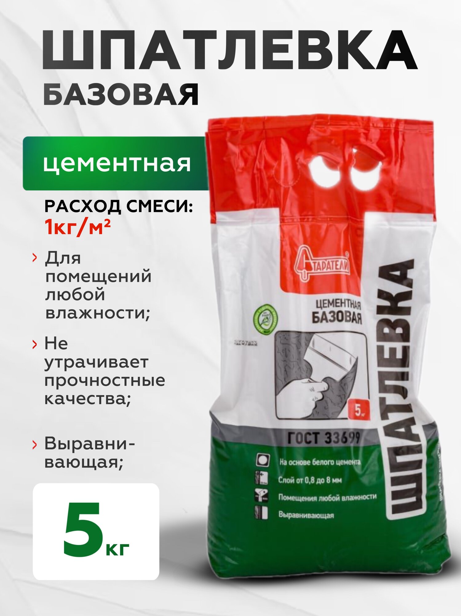 Купить Шпатлевка Старатели цементная "Базовая" 5 кг