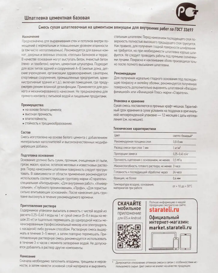 Ниже Вы можете прочитать отзывы на Шпатлевка Старатели цементная "Базовая" 5 кг, ознакомится с подробными характеристиками, посмотреть интересные обзоры и фотографии на Шпатлевка Старатели цементная "Базовая" 5 кг.