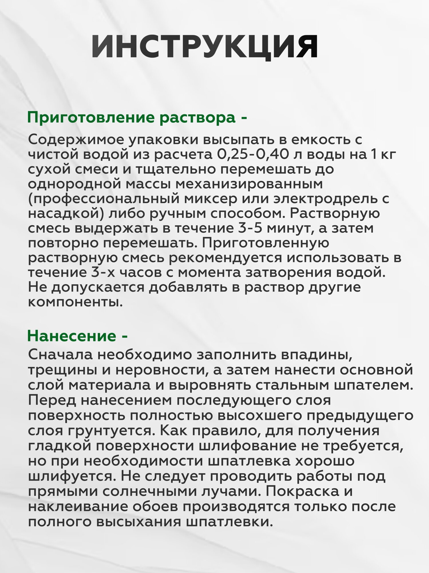 | Расход смеси (слой 1 мм) | 1 л/м² |