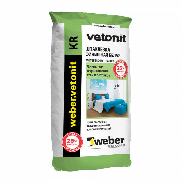 Ниже Вы можете прочитать отзывы на Шпаклевка (шпатлевка) Вебер Ветонит КR финишная белая для выравнивания стен и потолков, под обои, под окраску 20 кг, ознакомится с подробными характеристиками, посмотреть интересные обзоры и фотографии на Шпаклевка (шпатлевка) Вебер Ветонит КR финишная белая для выравнивания стен и потолков, под обои, под окраску 20 кг.