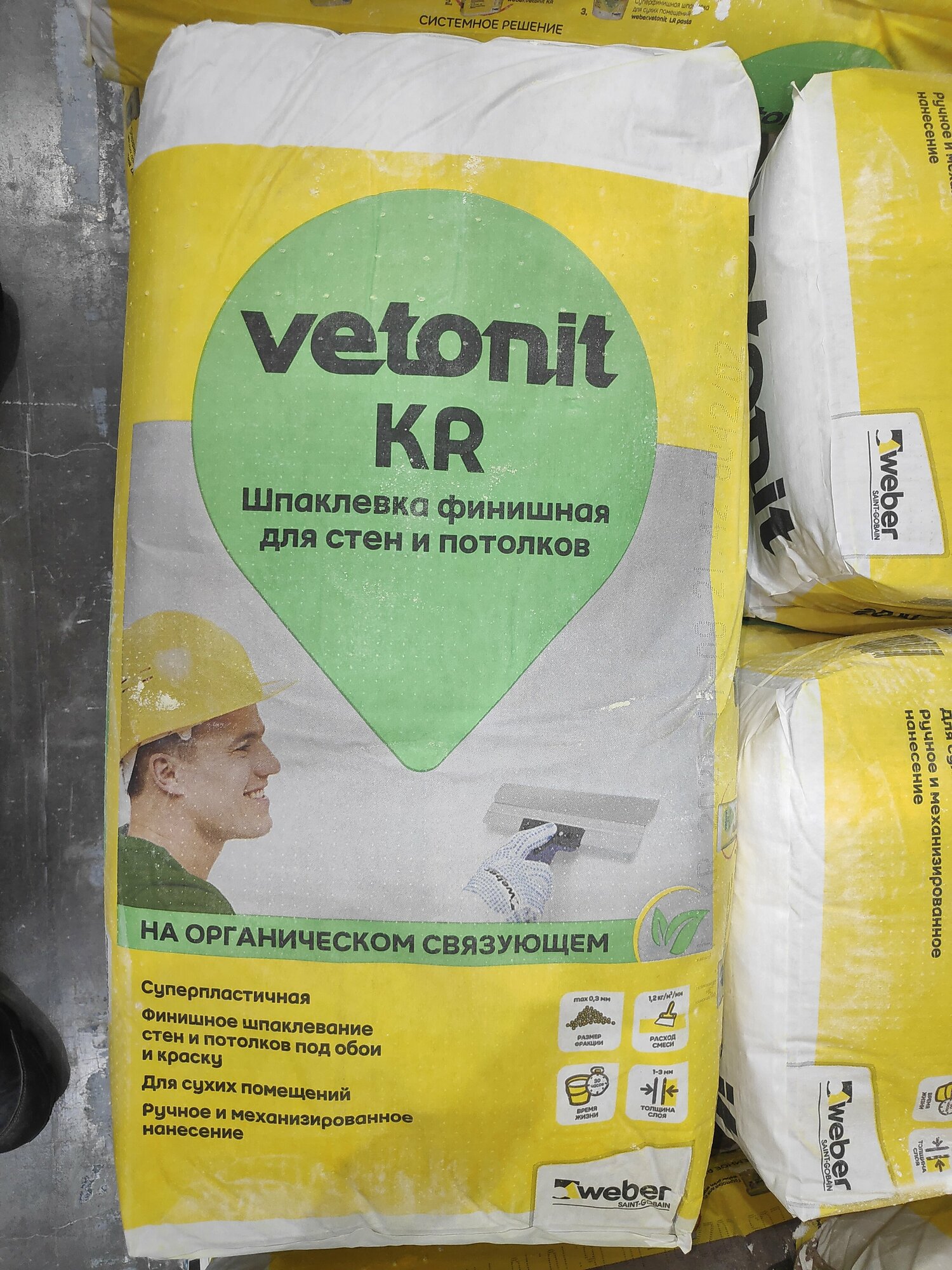 СохранитьШпаклевка (шпатлевка) Вебер Ветонит КR финишная белая для выравнивания стен и потолков, под обои, под окраску 20 кг интересное: