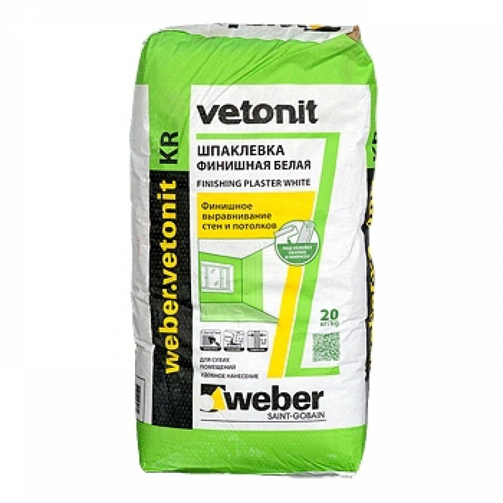 Вебер Ветонит КР шпаклевка финишная для сухих помещений (20кг)/WEBER.VETONIT KR шпаклевка финишная для сухих помещений (20кг)