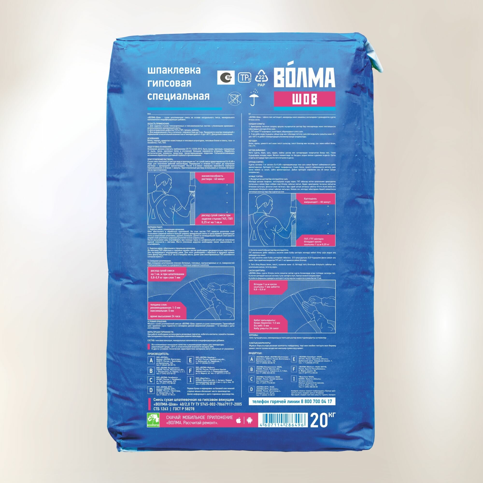 Волма Шпаклевка гипсовая Шов 20 кг 30001716
