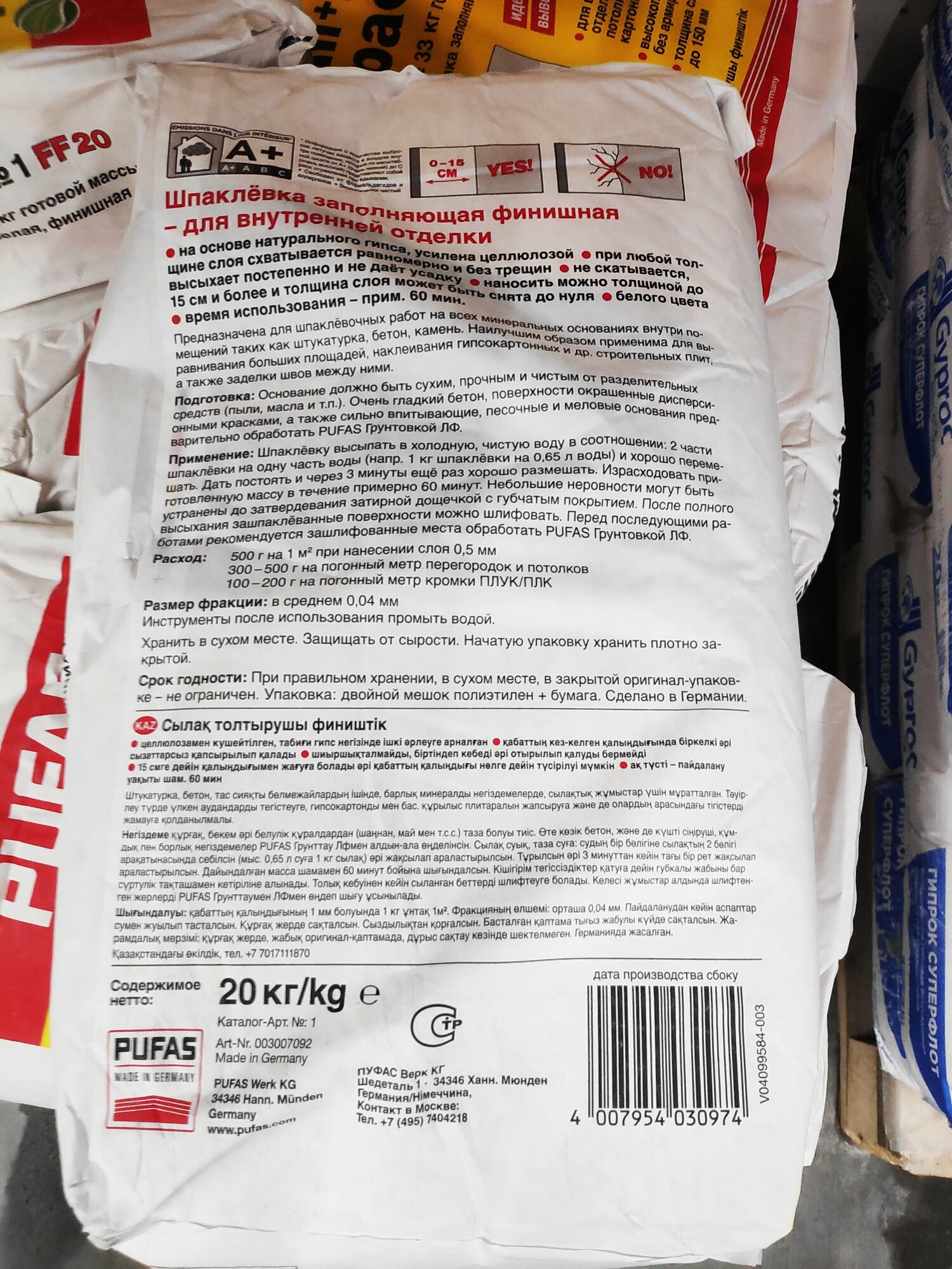 Ниже Вы можете прочитать отзывы на Шпаклевка гипсовая Pufas Full-Finish Spachtel 20 кг, ознакомится с подробными характеристиками, посмотреть интересные обзоры и фотографии на Шпаклевка гипсовая Pufas Full-Finish Spachtel 20 кг.