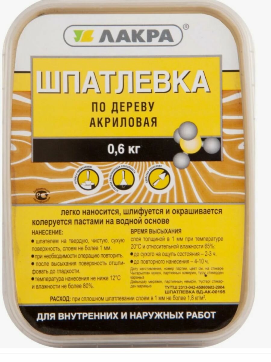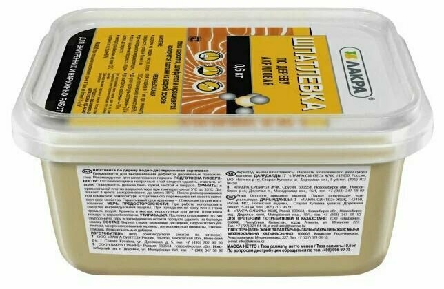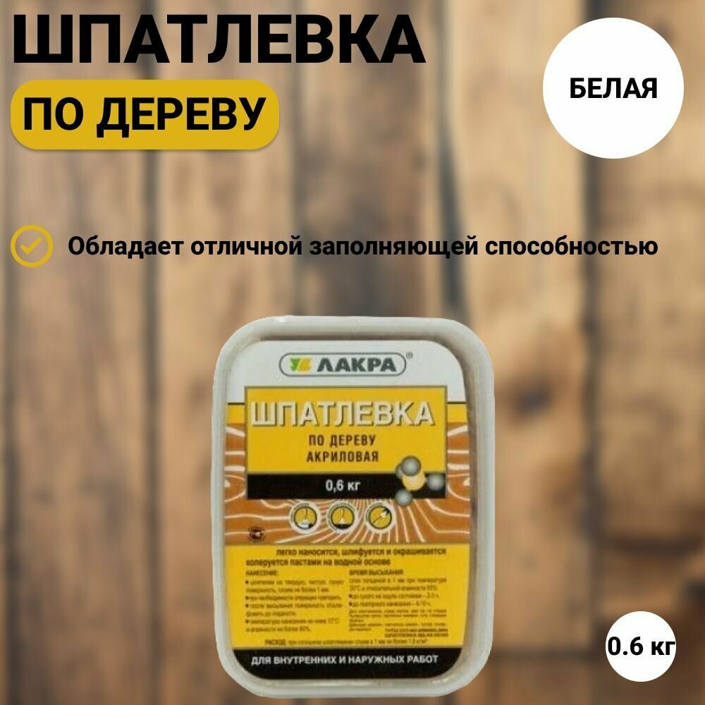 Шпатлевка по дереву Лакра акриловая, Белая, готовая к применению, 0,6 кг