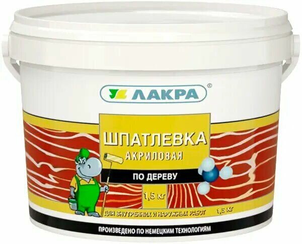 Шпатлевка по дереву Лакра акриловая, Береза, готова к применению, 1,5 кг