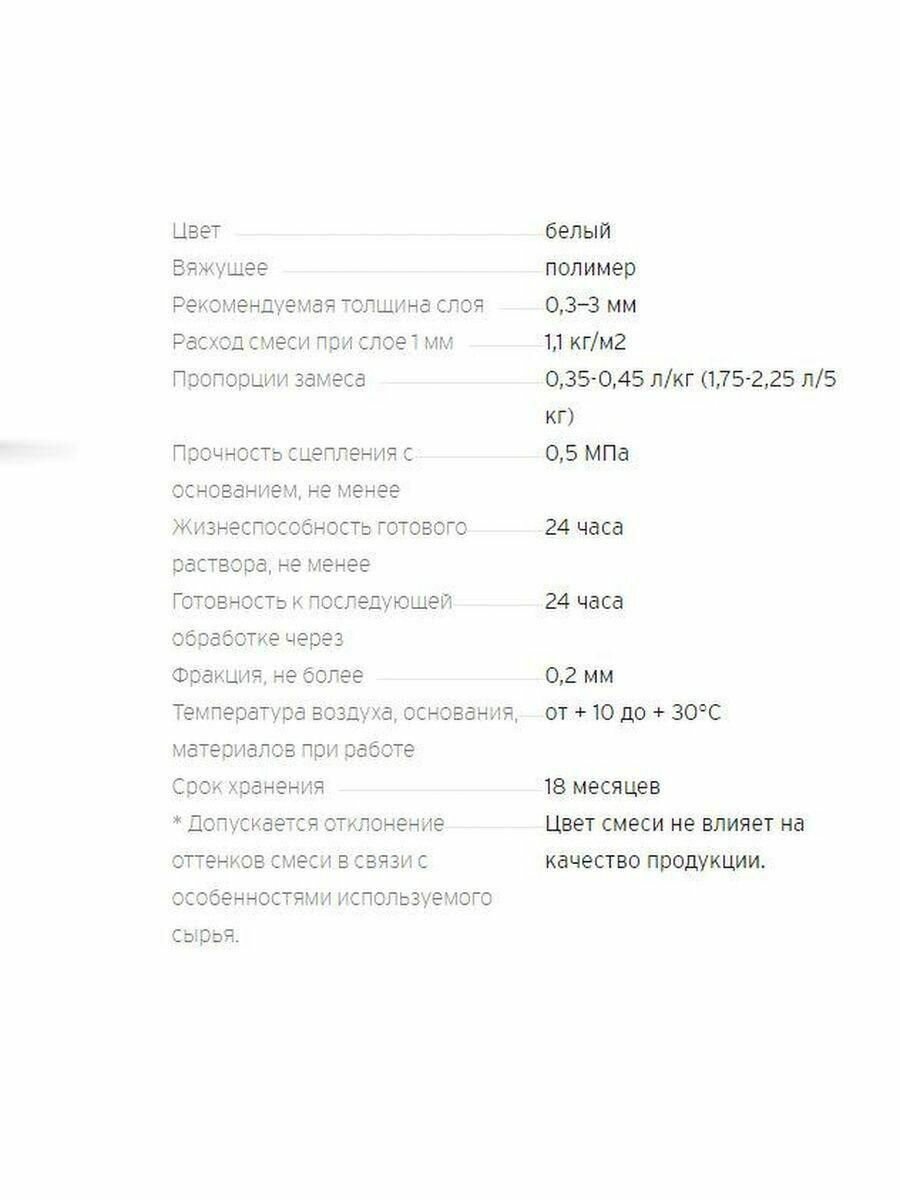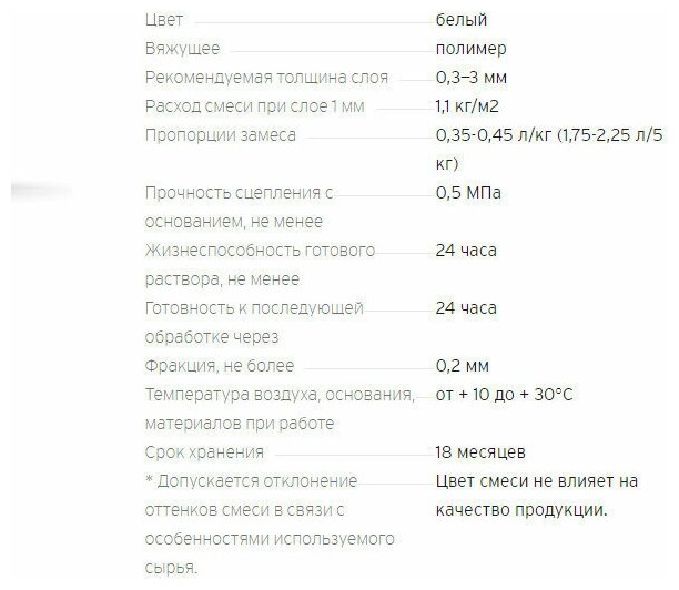 | Расход смеси (слой 1 мм) | 1 л/м² |