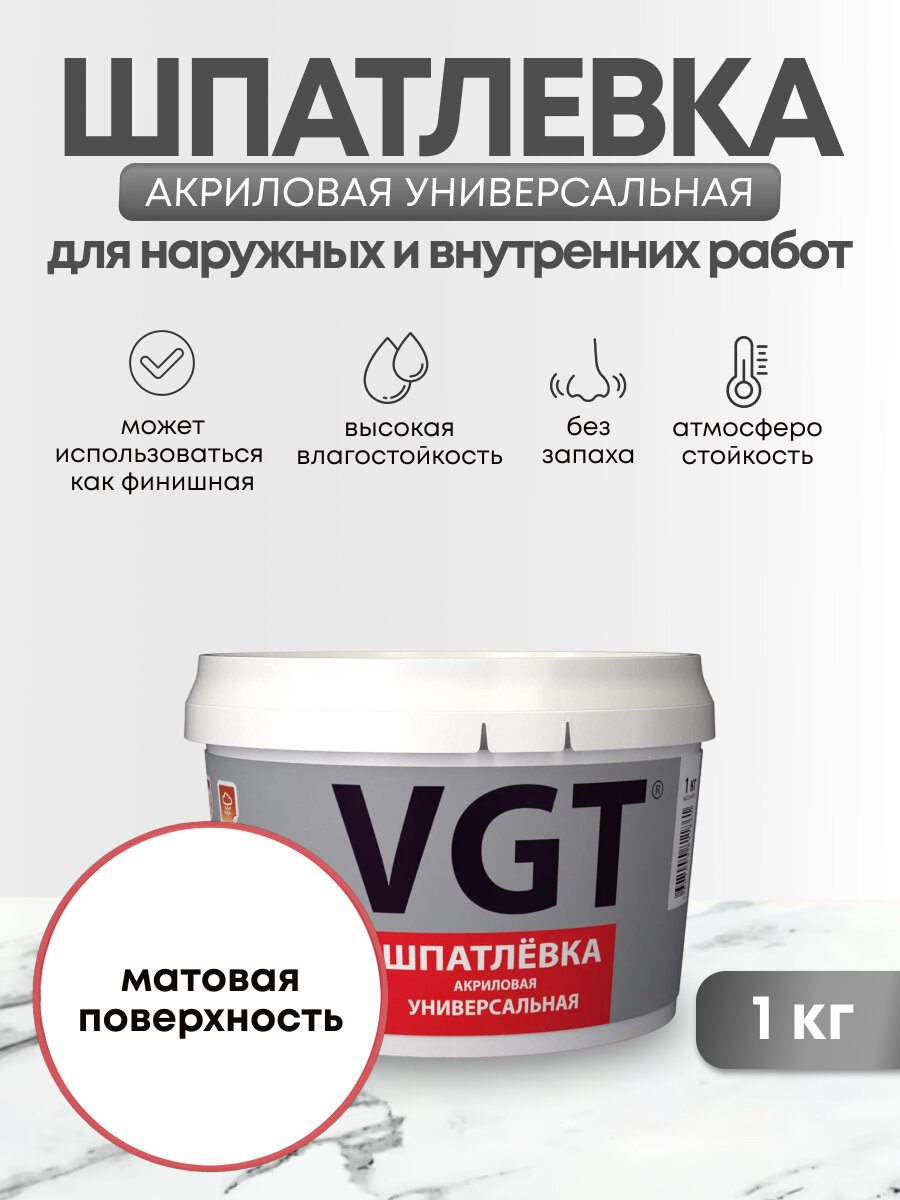 VGT Шпаклевка акриловая универсал, 1 кг для наруж и внутренних работ 52963 .