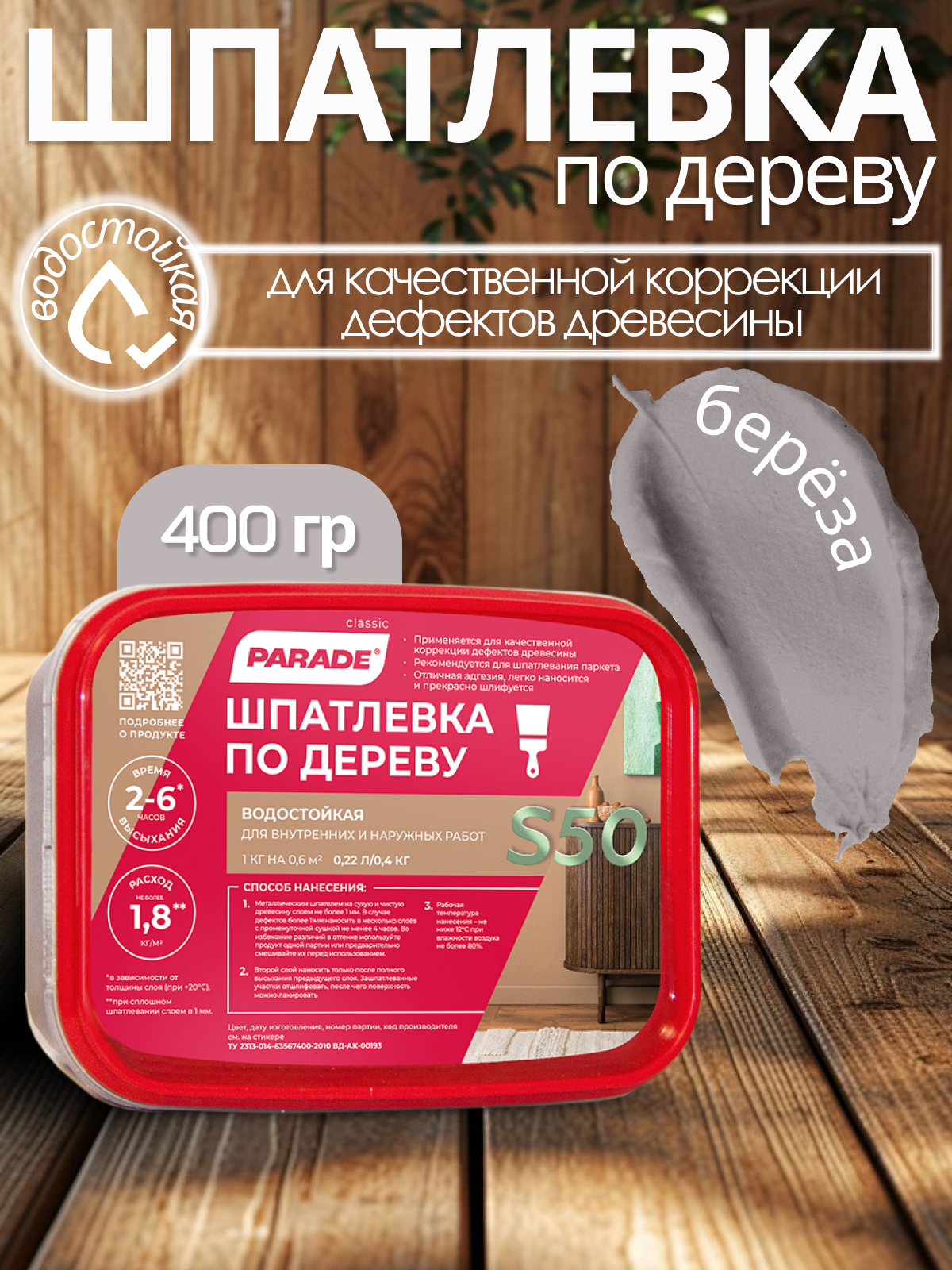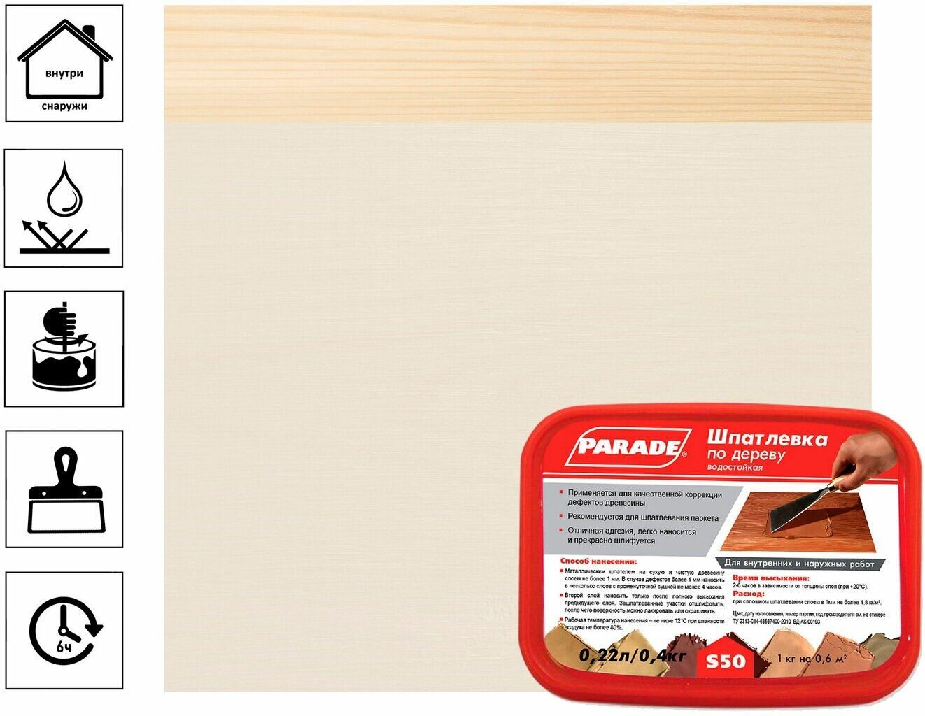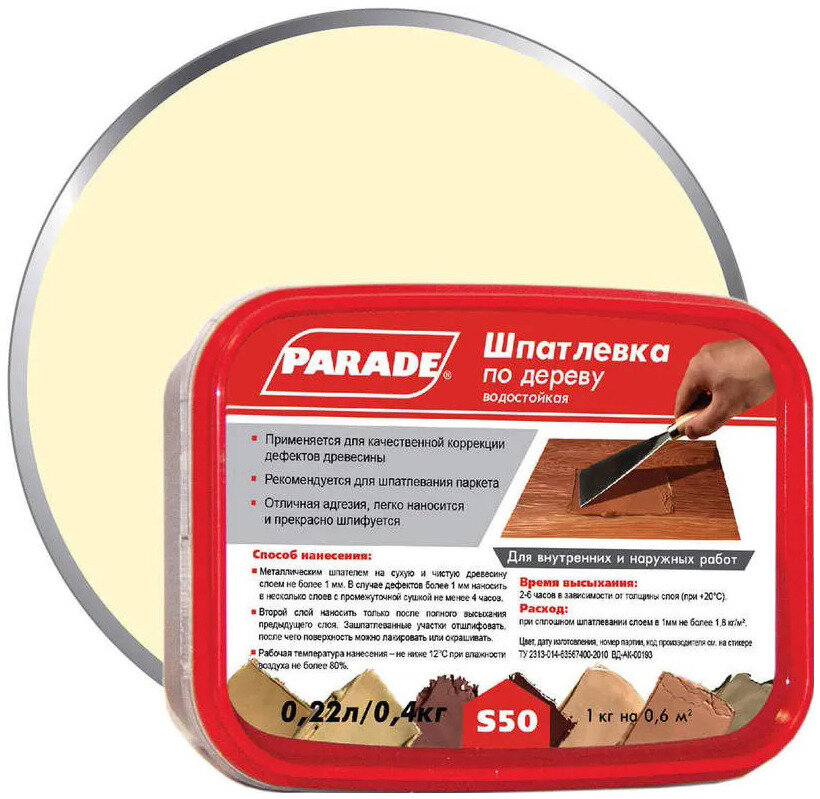 Шпатлевка по Дереву Parade S50 0.4кг Сосна Водостойкая для Заполнения и Выравнивания Трещин.