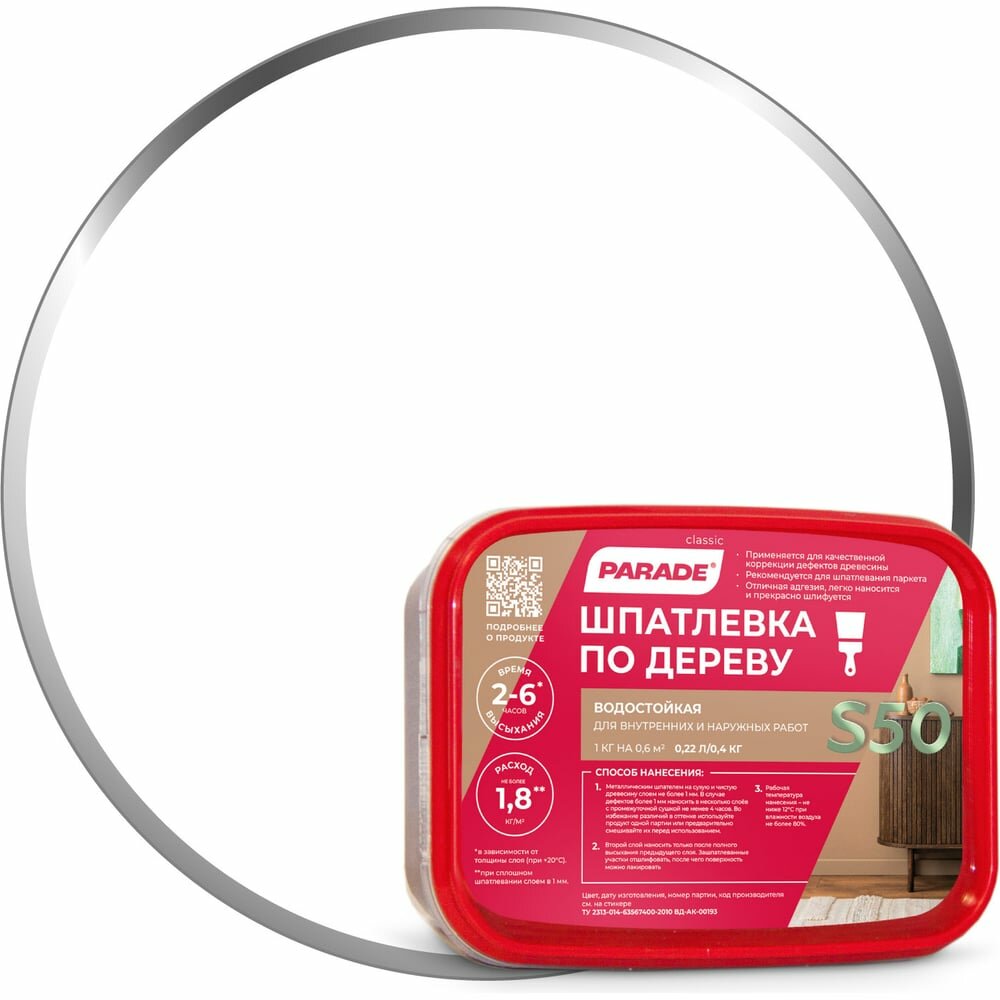 Шпатлевка по Дереву Parade S50 0.4кг Сосна Водостойкая для Заполнения и Выравнивания Трещин.