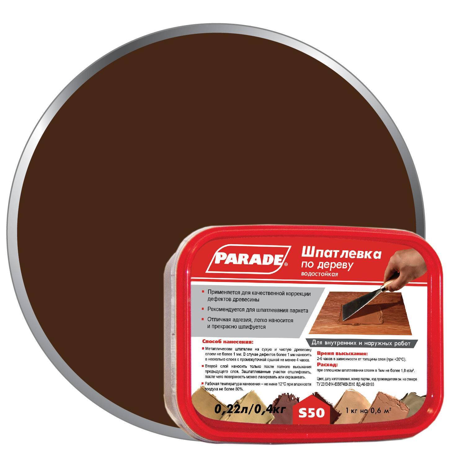 Шпатлевка по дереву Бук 0,4 кг S50 PARADE 90001262557