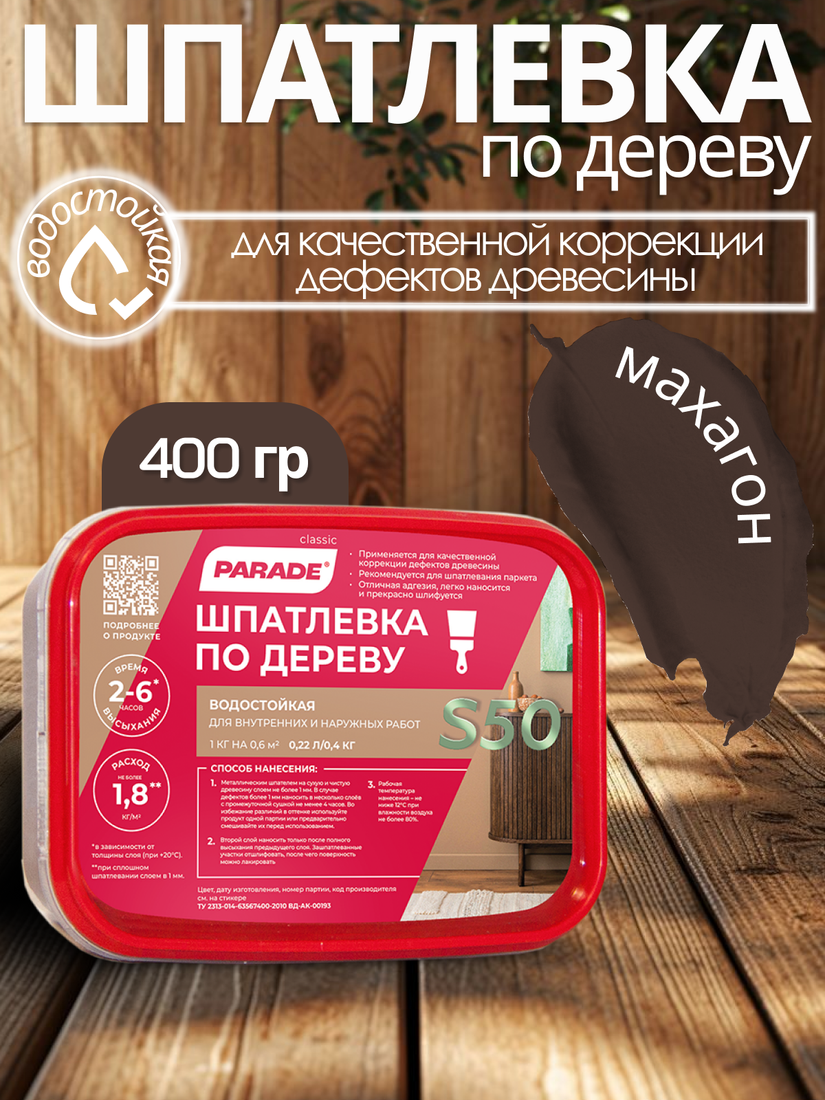 Купить Шпатлевка по дереву PARADE S50 Махагон 0,4кг