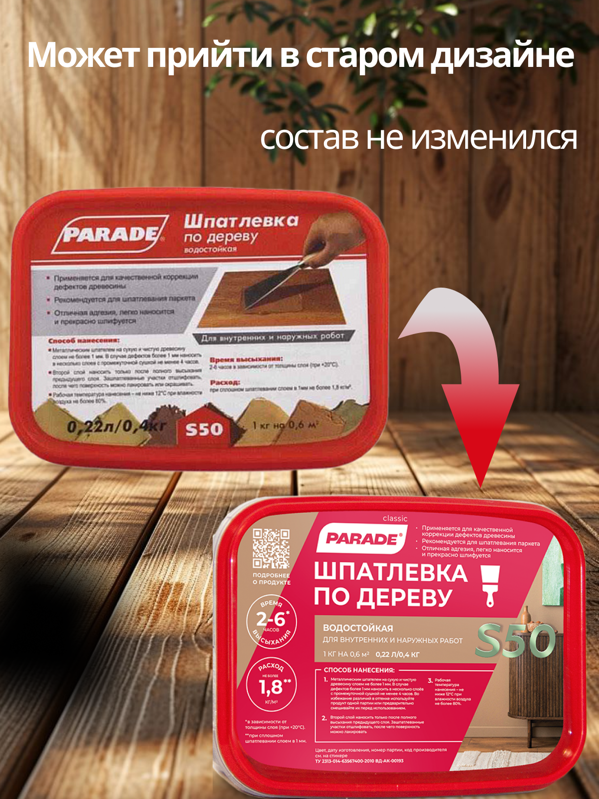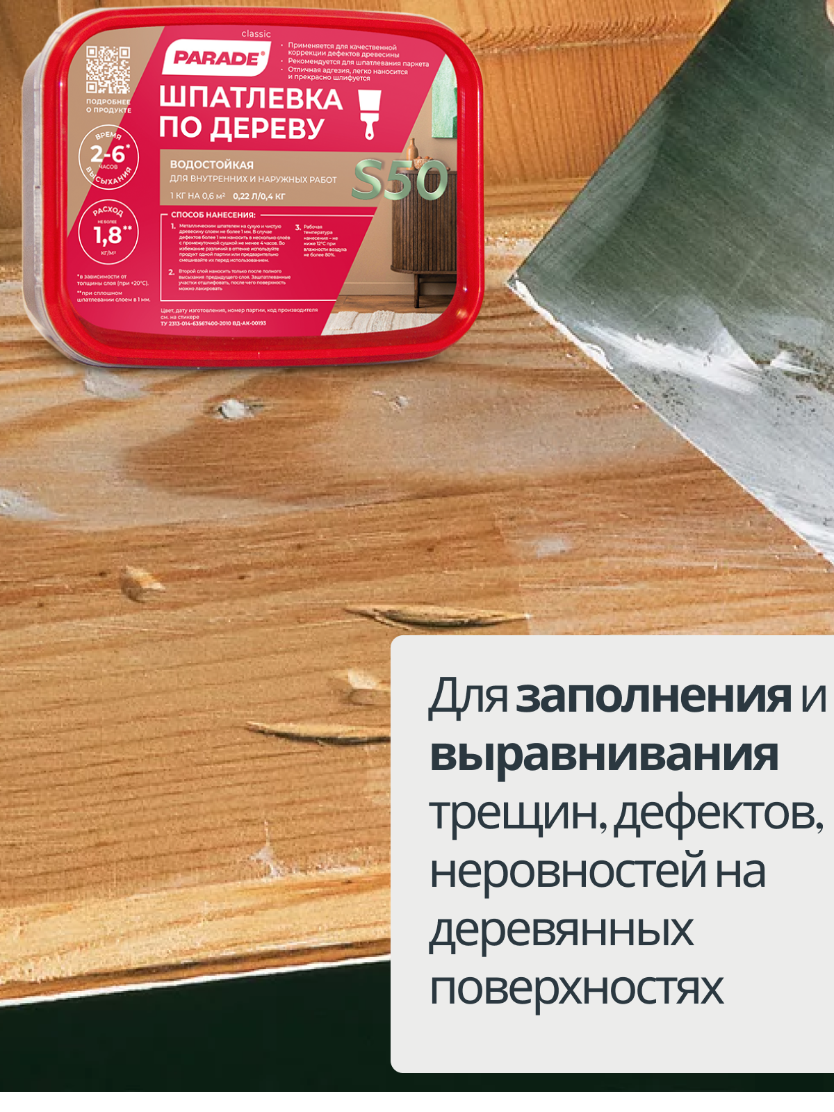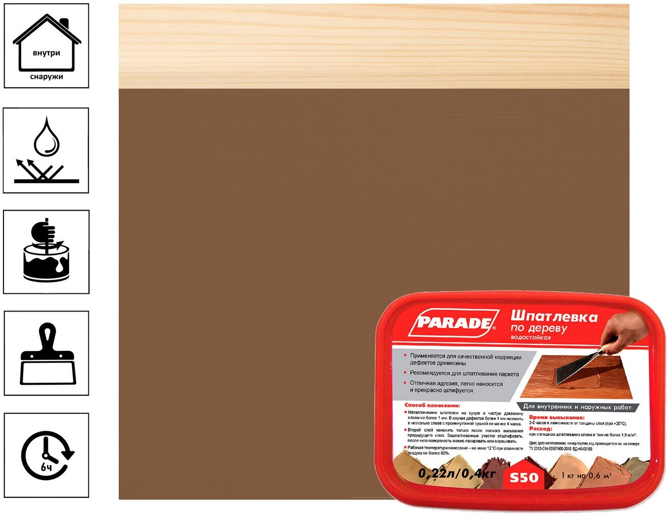 Шпатлевка по Дереву Parade S50 0.4кг Сосна Водостойкая для Заполнения и Выравнивания Трещин.