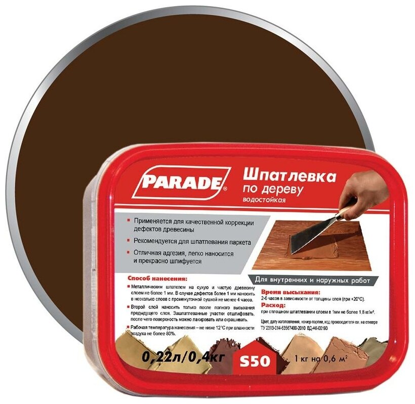 Ниже Вы можете прочитать отзывы на Шпатлевка по дереву PARADE S50 Махагон 0,4кг, ознакомится с подробными характеристиками, посмотреть интересные обзоры и фотографии на Шпатлевка по дереву PARADE S50 Махагон 0,4кг.